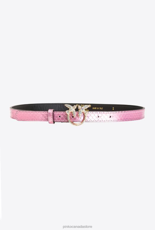 Belts | Galleria thin laminated reptile skin belt Pinko POWDER PINK-SHINY GOLD T8J281023