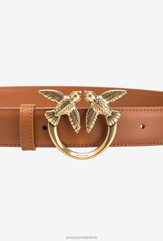 Belts | Love Birds leather belt Pinko COGNAC-ANTIQUE GOLD T8J281004