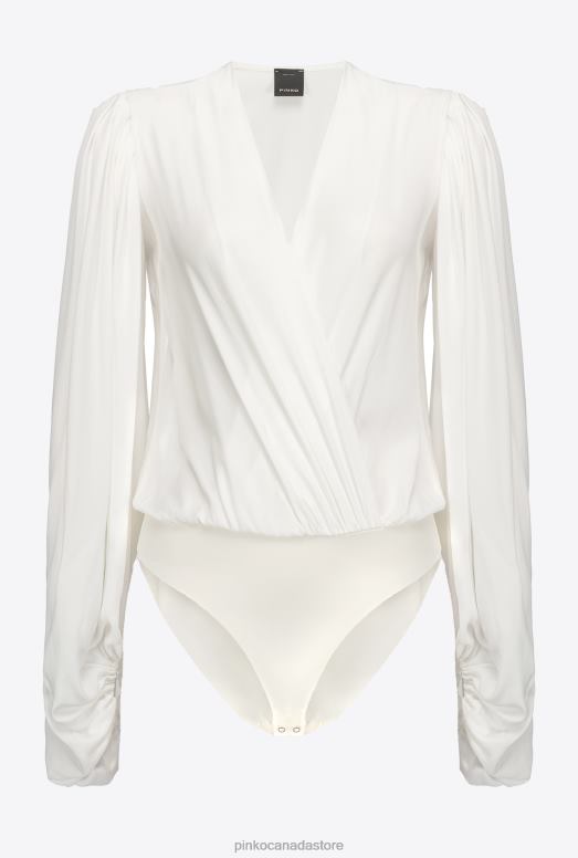 Blouses | Silk-blend wrap-front bodysuit Pinko CLOUD WHITE T8J28299