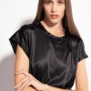 Short-sleeved blouse in stretch silk satin.