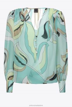 Blouses | Voile blouse with flower-bud print Pinko MULTICOLOUR – AQUA GREEN/BEIGE T8J28254