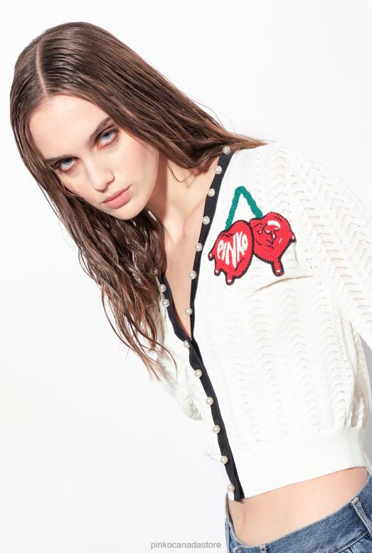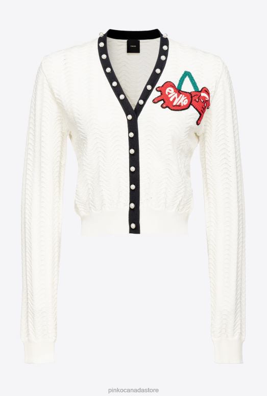 Cardigan | Cropped cardigan with cherry embroidery Pinko MULT. WHITE/BLACK/RED T8J28544