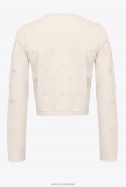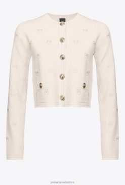 Cardigan | Cropped jacquard Love Birds cardigan Pinko BIRCH BEIGE T8J28558