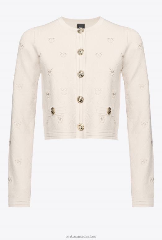 Cropped, snug-fitting cardigan in pique-knit jacquard fabric, with Love Birds logo embroidered all over. Round neck, long sleeves and small pockets with button at the sides. Fastened with jewel buttons down the front.