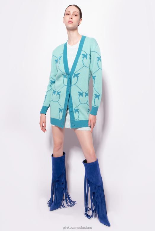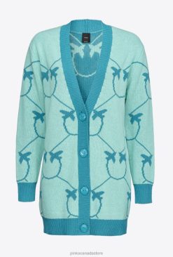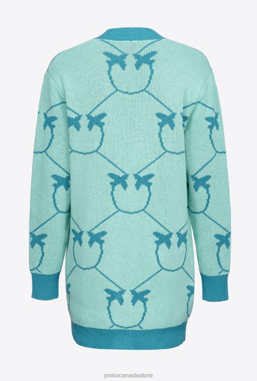 Cardigan | Monogram jacquard maxi cardigan Pinko AQUA GREEN/TEAL T8J28516