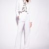 Flare and fit poly crepe trousers. High waist, slanted side pockets and straight legs with pleat in the middle on the front and back, which flare out at the bottom. Lined. Fastened with zip and small concealed hook. This garment is part of the “Dress to Impress” partywear capsule collection.