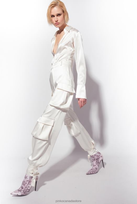 Casual Trousers | Satin cargo trousers Pinko SNOW WHITE T8J28764