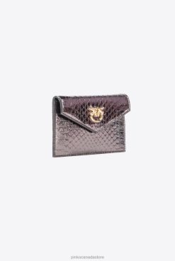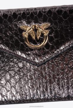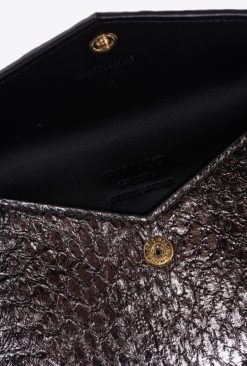 Clutch Bags | Galleria Flat card holder in laminated reptile skin Pinko GUNMETAL GREY-SHINY GOLD T8J281170