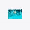 Flat envelope-shaped card holder in laminated ayers leather. This fine exotic leather boasts a python scale-reminiscent pattern. The material is naturally carved and, therefore, may have some imperfections, which add value as far as uniqueness is concerned. The fastening is completed by the metal Love Birds Diamond Cut plaque. The accessory is part of the Limited Edition special capsule collection which comprises PINKO Galleria-exclusive limited-edition models.