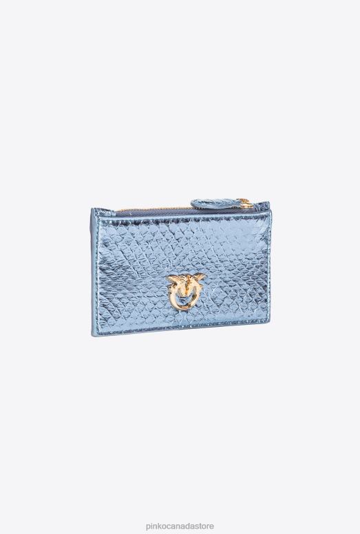 Clutch Bags | Galleria zipped card holder in laminated reptile skin Pinko LIGHT BLUE-SHINY GOLD T8J281179