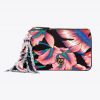 Flat Bag clutch in printed recycled cotton canvas featuring a charm with tassel insert in the same fabric. Customised with Love Birds Diamond Cut plaque on the front. Zip fastening with leather pull-tab.
