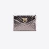 Quilted nappa leather card holder with chevron pattern. Customised with metal Love Birds Diamond Cut logo plaque. Polycotton-lined interior. Zip fastening.