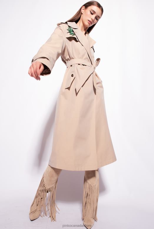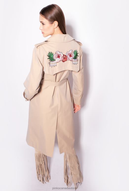 Coats | Embroidered trench coat Pinko SAFARI BEIGE T8J28837