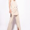 Long, stretch linen vest with halterneck, lacing at the back of the neck and open back. Crossover V-neck, side pockets with flap and inner lining. Double-breasted button fastening. – Model is 175cm tall and wears a size 40.