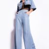 Slim-fitting jeggings in cotton denim and stretch lyocell. Extra-high basque waist with belt loops and thin matching-fabric belt with mini metal Love Birds Diamond Cut buckle. Vertical topstitching on the legs and slit in the hems at the bottom. Fastened with invisible side zip. – Model is 178cm tall and wears a size 40.