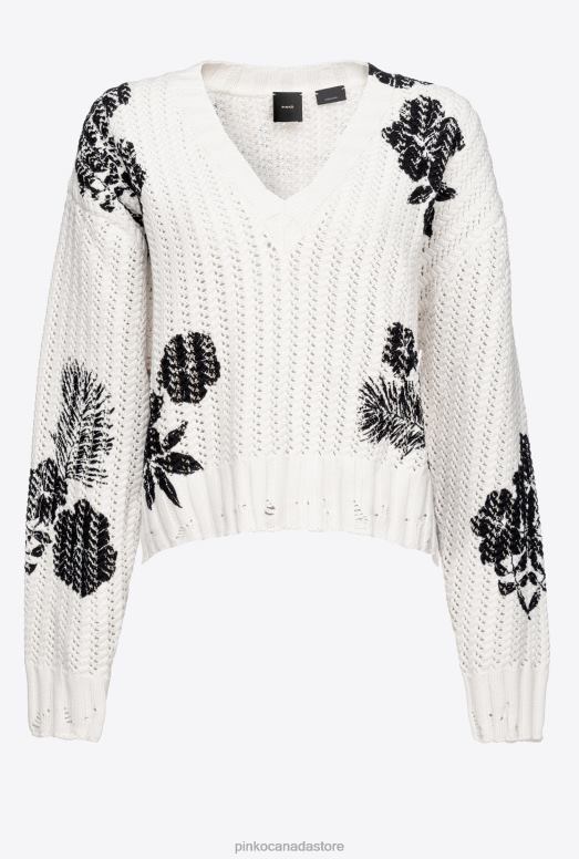 Jumpers | Graphic floral-print pullover Pinko WHITE/BLACK T8J28499