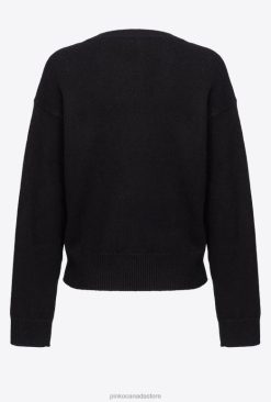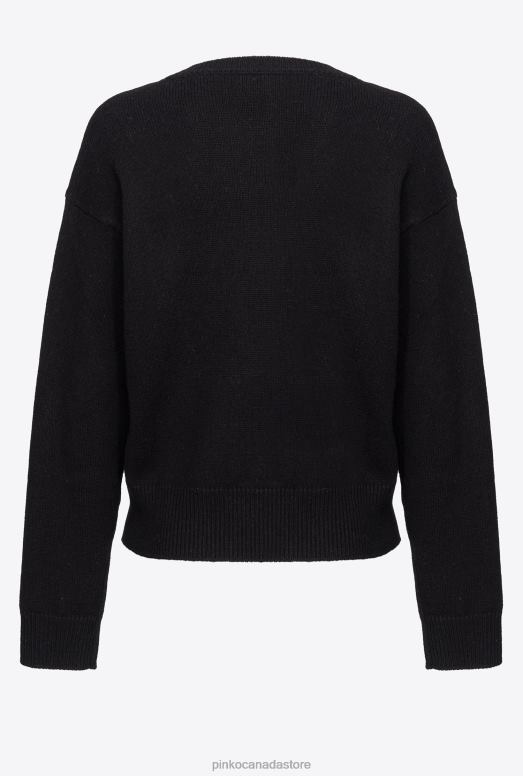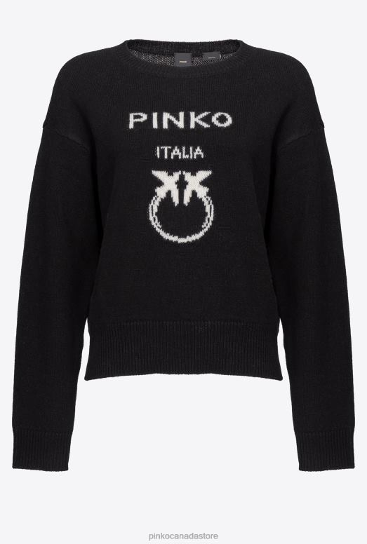 Long-sleeved pullover in 100% pure wool yarn, with inlay with PINKO logo and Love Birds detail in the middle. Ribbed hem, cuffs and round neck.
