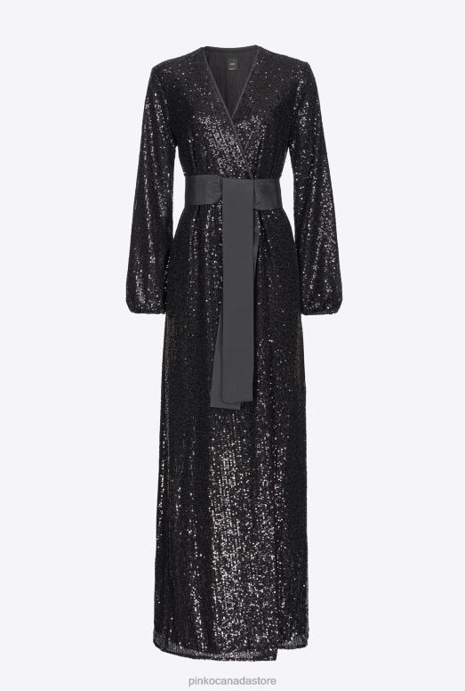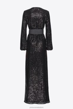 Long Dresses | Sequinned wraparound dress Pinko LIMO BLACK T8J28197