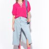 Long frilly skirt in ultra-light, semi transparent-effect muslin with openwork embroidery. Waist band and lining for the mini skirt to counteract the fabric’s see-through effect. Front button fastening.