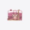 Micro Love Bag One in laminated ayers leather. This fine exotic leather boasts a python scale-reminiscent pattern. The material is naturally carved and, therefore, may have some imperfections, which add value, as far as the bag’s uniqueness is concerned. The strap fastening is completed by the pave rhinestone-embellished iconic metal Love Birds Diamond Cut buckle. The shoulder strap combines the classic round-link chain with a practical, adjustable leather pad. The bag is part of the Limited Edition special capsule collection which comprises PINKO Galleria-exclusive limited-edition models. Use the special NFC chip to enjoy a special experience, specific to the bag you have just bagged!