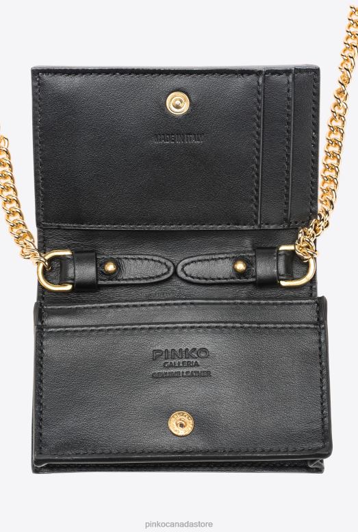 Credit card holder in multicoloured Karung skin. This Italy-treated exotic leather boasts a python scale-reminiscent pattern. The final hue is dependent on the second spraying step, whose stunning colour effects make each and every bag unique. The front flap is customised with a metal Love Birds Diamond Cut plaque. Removable thin-chain shoulder strap. The accessory is part of the Limited Edition special capsule collection which comprises PINKO Galleria-exclusive limited-edition models.