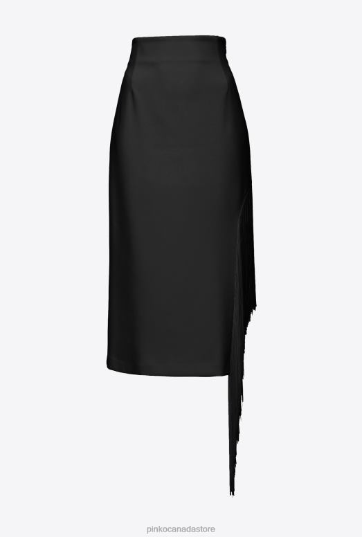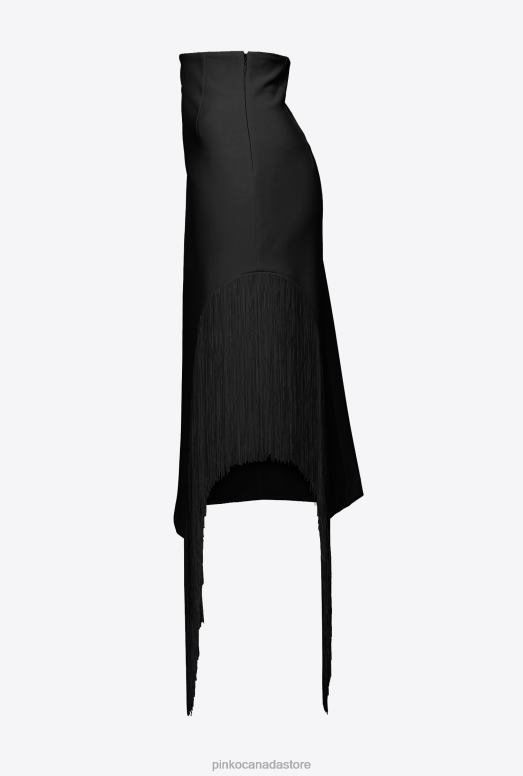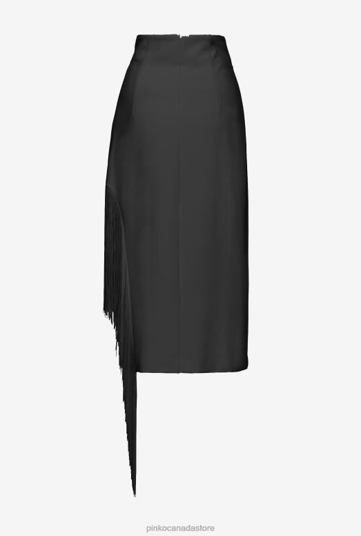 Mid-Calf Length Skirts | Calf-length skirt with side fringing Pinko LIMO BLACK T8J28910