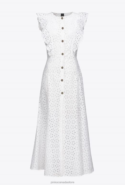 Mid-Length Dresses | Cotton dress with broderie anglaise Pinko BRIGHT WHITE T8J28225