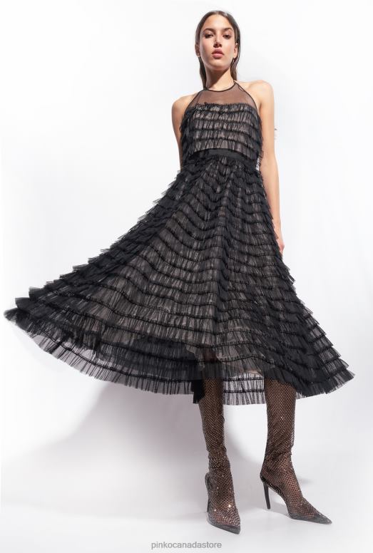 Mid-Length Dresses | Ruffled tulle midi dress Pinko BLACK/NUDE T8J28116