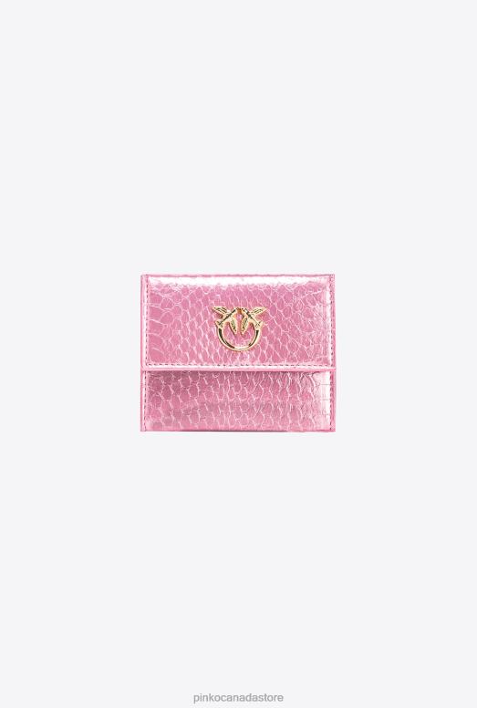 Purses | Galleria compact purse in laminated reptile skin Pinko POWDER PINK-SHINY GOLD T8J281168