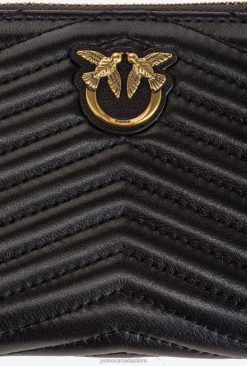 Purses | Small zip-around purse in chevron-patterned nappa leather Pinko BLACK-ANTIQUE GOLD T8J281137