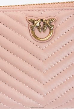 Purses | Zip-around wallet in chevron-patterned nappa Pinko DUSTY PINK-ANTIQUE GOLD T8J281159