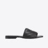 Soft nappa leather slip-ons with a square open toe, quilted nappa strap on the front and metal Love Birds logo embellishment. Flat 2-cm heel. Leather insole and rubber sole.
