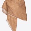 Large cotton and modal jacquard scarf, with logo motif all over made shiny by the lurex thread woven through the material. Fringing around the edge.