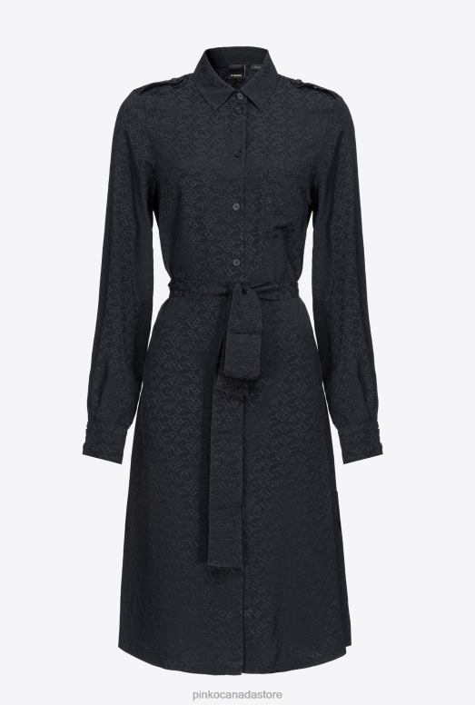 Shirts | Jacquard shirt dress with logo print Pinko LIMO BLACK T8J28165