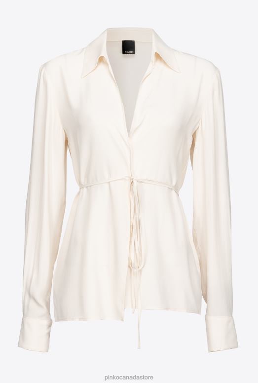 Shirts | Silk-blend shirt with tie Pinko PINK SMOKE WHITE T8J28249