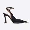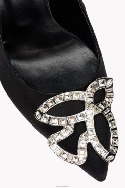 Satin-toe pumps embellished with chatons and rhinestones at the toe, which form the Love Birds logo. Contrasting-colour leather sole with 10-cm stiletto heel. Breathable microfibre lining.