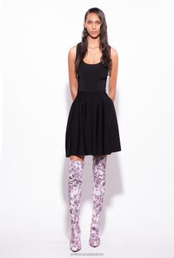 Short, sleeveless dress in stretchy knit viscose with special glossy finish. Square neckline at the front, jewel detail on one shoulder and open back with multiple criss-crossing straps. The slightly puffy skirt features delicate pleating. – Model is 178cm tall and wears a size 40.