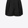 Slightly loose-fitting shorts in stretch crepe fabric. High waist, belt loops, darts at the front, slanted front pockets and small welt pocket on the back. Zip and hook fastening.