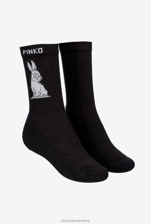 Sporty socks in rib-knit, 100% cotton fabric, with PINKO logo and rabbit motif at the side.