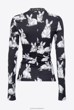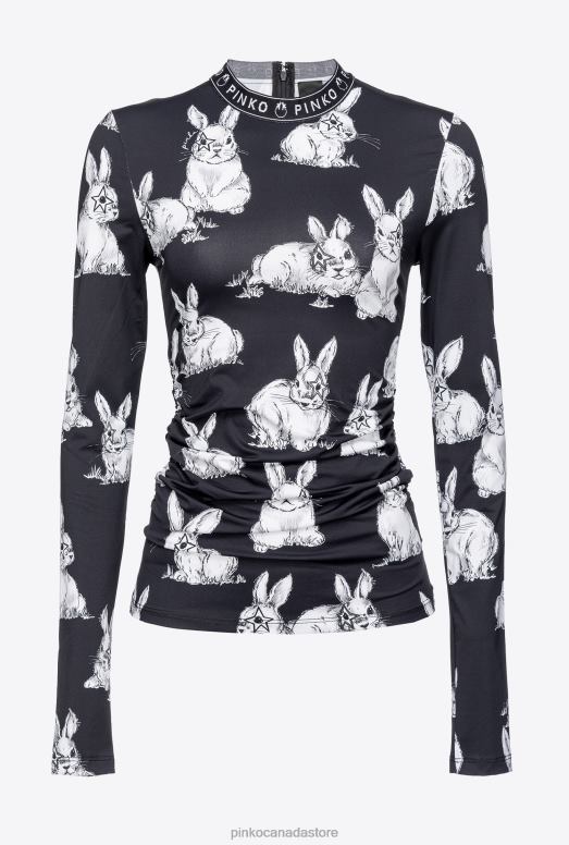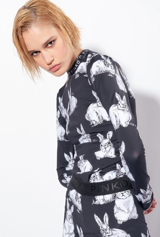 Long-sleeved top in technical stretch jersey, with rabbit print all over. Fitted piece with logo-branded round neck band and draping on the front and back. Concealed central zip fastening on the back. – Model is 178cm tall and wears a size 40.