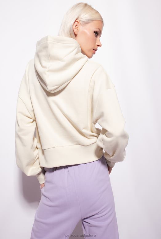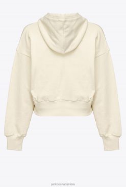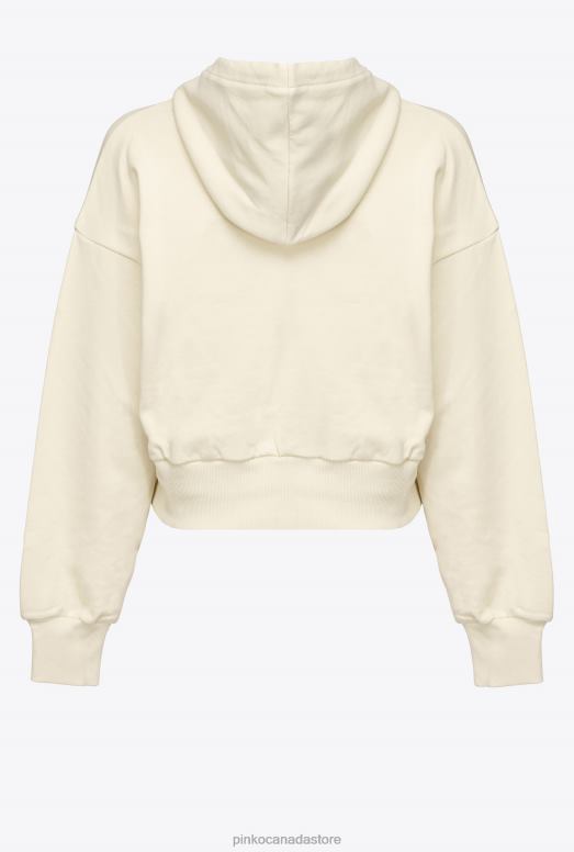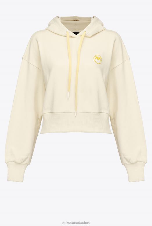 Cropped cotton sweatshirt with Love Birds mini-logo print, layered by the PINKO lettering on the front left. Neck with drawstring hood and long, low set-in sleeves with cuffs. – Model is 175cm tall and wears a size 40.