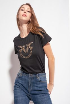 T-Shirt | T-shirt with Love Birds embroidery Pinko LIMO BLACK T8J28458