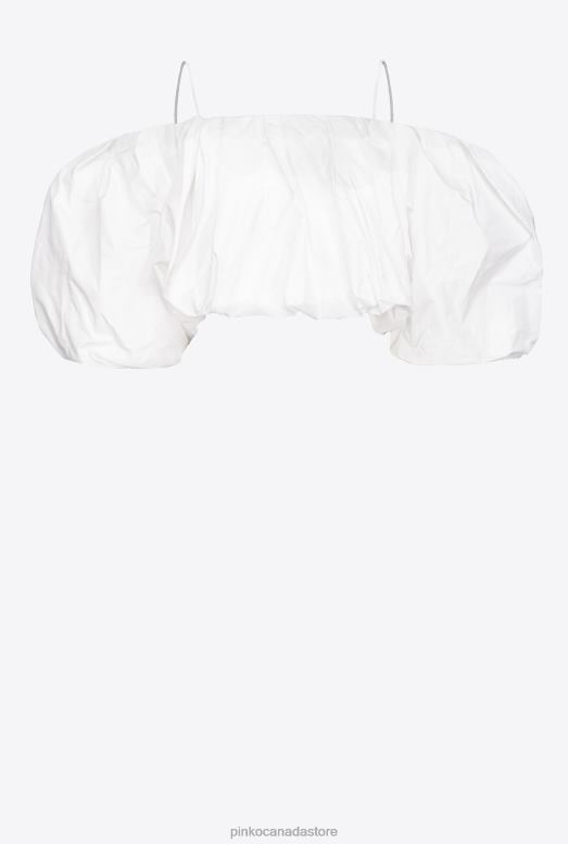 Balloon-fit taffeta crop top. This couture allure-reminiscent fabric has been designed to create elegant, striking and sculptural silhouettes: the crisp-touch taffeta boasts the same appearance on both the front and underside, and is particularly suitable for emphasising volumes. Straight off-the-shoulder neckline, short sleeves and spaghetti straps. The garment is part of the Limited Edition special capsule collection which comprises PINKO Galleria-exclusive limited-edition models.