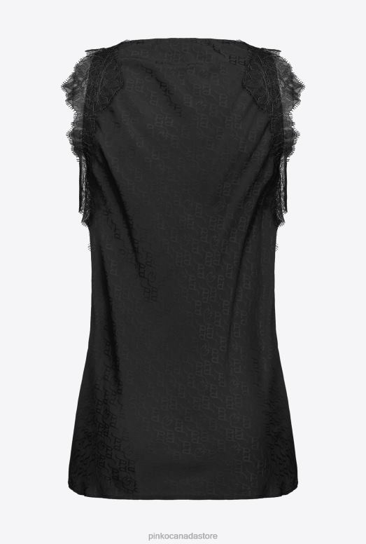 Top | Jacquard logo top with lace Pinko LIMO BLACK T8J28328