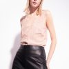Sleeveless jacquard silk crepe de chine top with logo print. Lace detailing on the squared neckline and the armhole. This piece is made from material-certified throughout the production chain-from forests that are managed in accordance with sustainability principles. – Model is 175cm tall and wears a size 40.