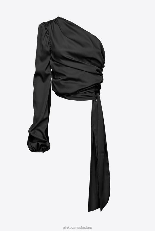 Top | One-shoulder satin top Pinko LIMO BLACK T8J28247
