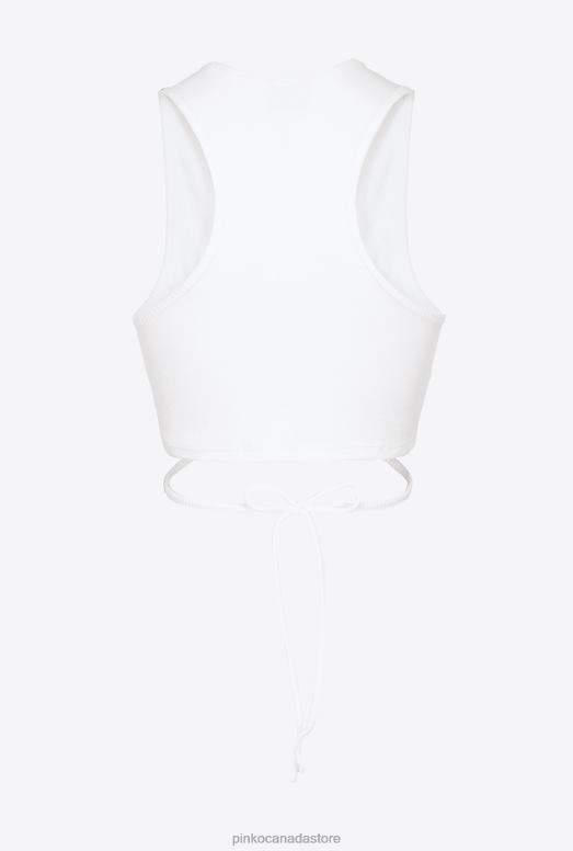 Top | Ribbed crop top with lacing Pinko PURE WHITE T8J28467