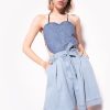 Top | Stretch linen crop top Pinko DIRECTOR BLUE T8J28449