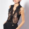 Sleeveless, viscose crepe marocain top with drawn-effect tropical print. Thin shoulder straps, and V-neck and hem embellished with lace-effect embroidery featuring small PINKO logos around the edge.