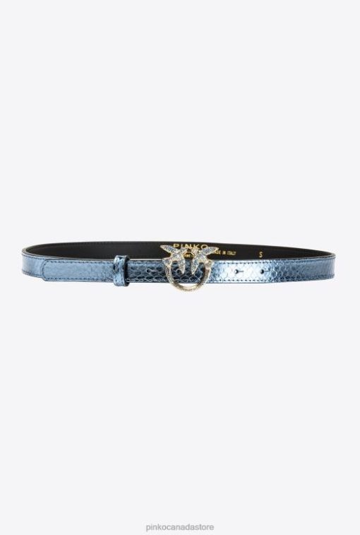 Belts | Galleria thin laminated reptile skin belt Pinko LIGHT BLUE-SHINY GOLD T8J281022